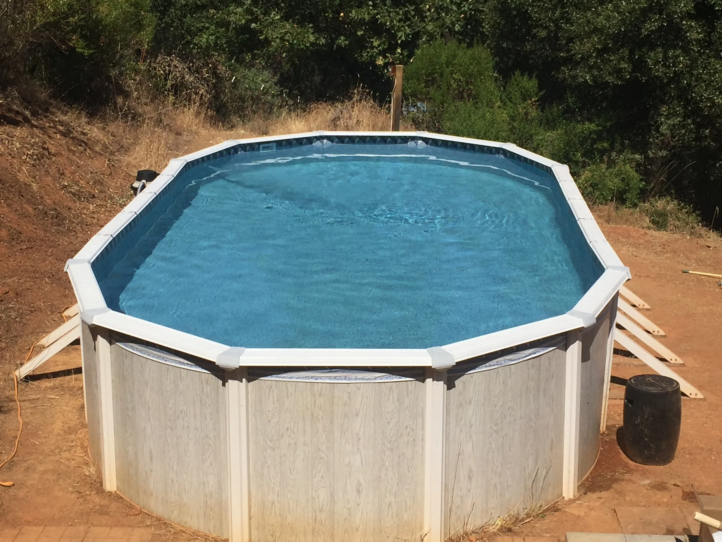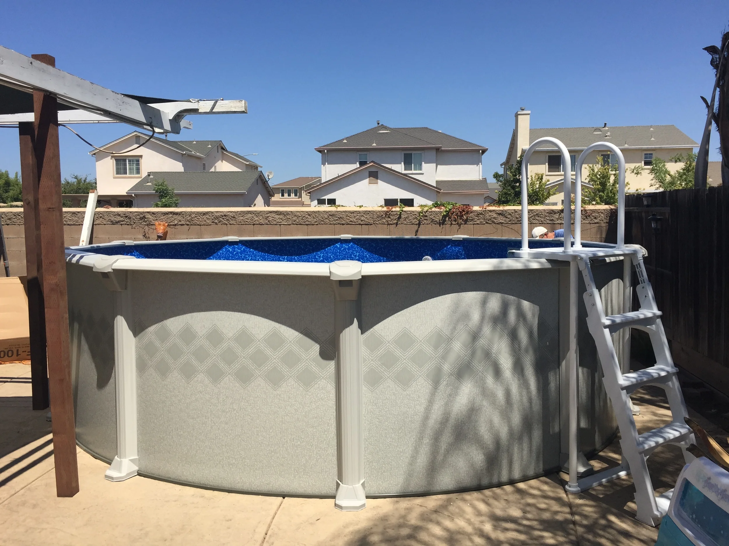 So this customer hired an unlicensed, uninsured installer to set up their pool. The installer told them it was a brand new pool, which it wasn't, he painted it to look new, which it didn't. The pool was originally from the factory a 28' round pool, which he decided to make a 24' round pool, which you can't................